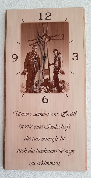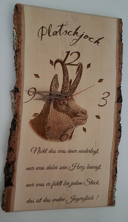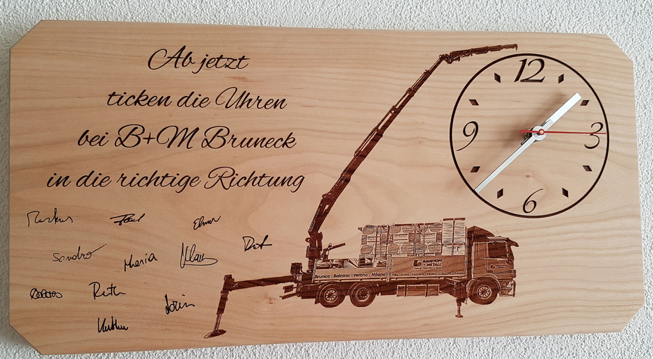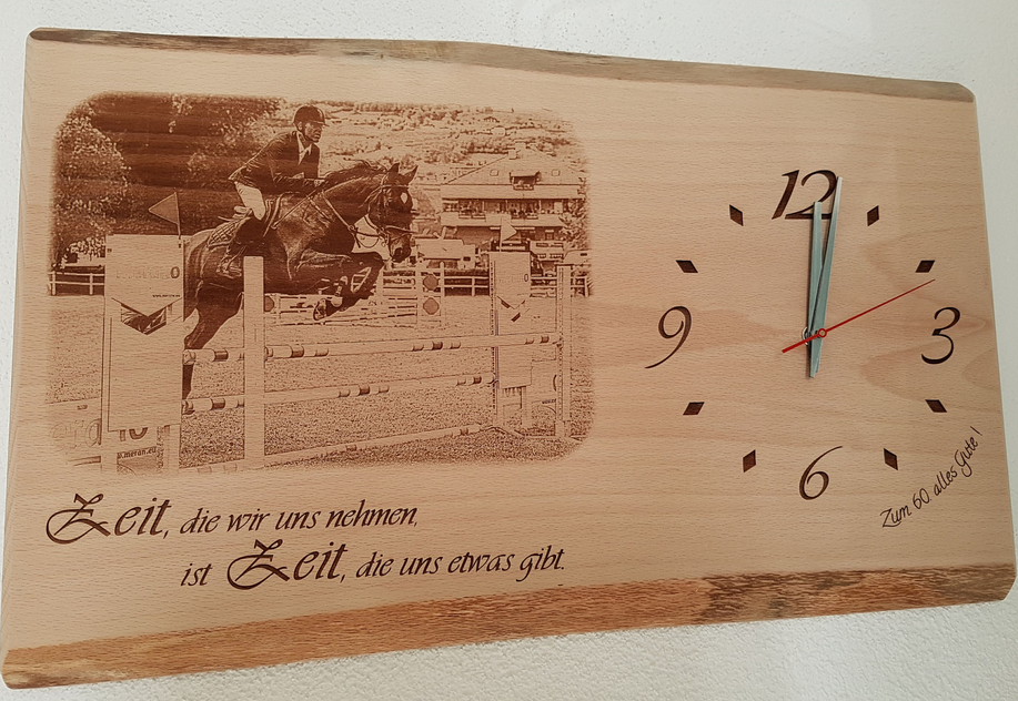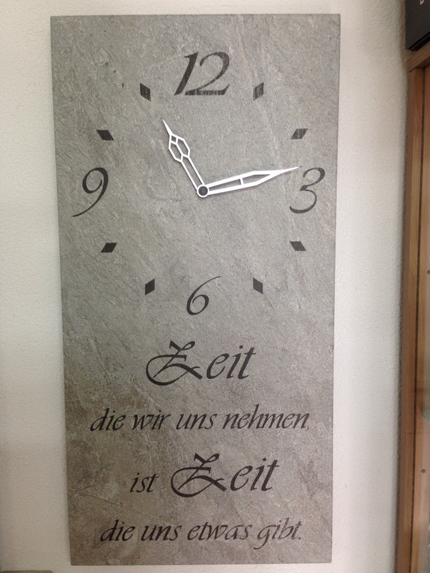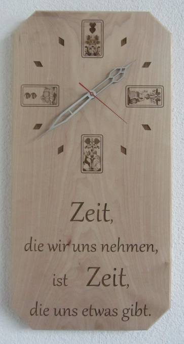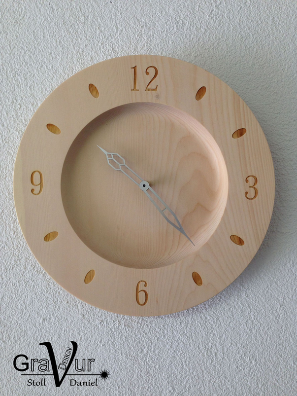Wanduhren in allen Formen und Varianten. Erhältlich in verschiedenen Holzarten oder auch kombiniert mit Plexiglas oder als Steinfliese.